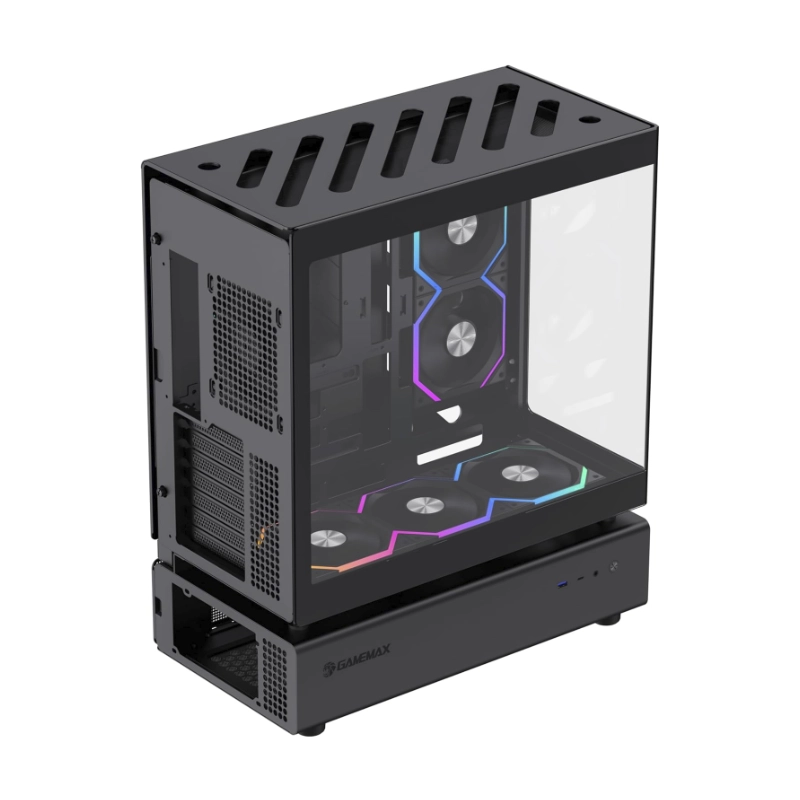 Case Gamemax (N80 Bk) Sin Fuente, Negro, Atx, 2 Panel Vidrio, X6 Fan, Led-Argb