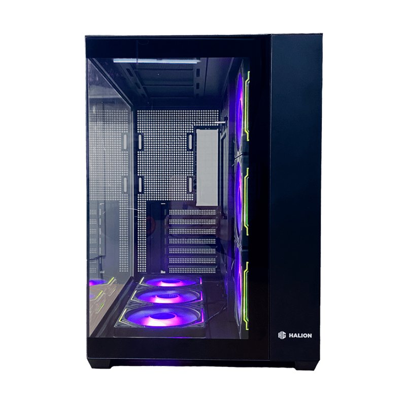 Case Halion (Fish Tank C708-B) Sin Fuente, Negro, Atx, 2 Panel Vidrio, X6 Fan, Con Control, Led-Argb