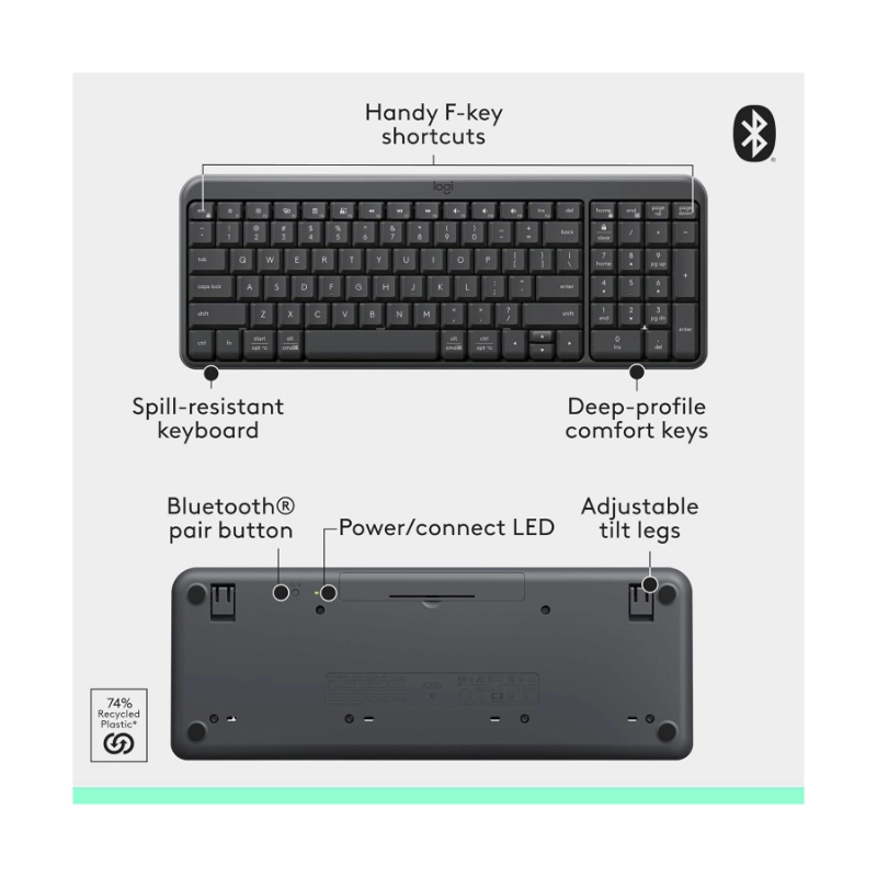 Teclado Inalambrico Logitech K250 (920-013447) Rosado, Bluetooth, Resistente A Derrames, Teclas Comodas