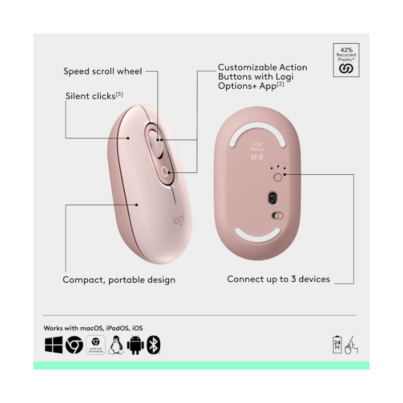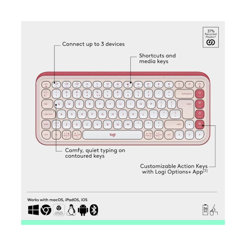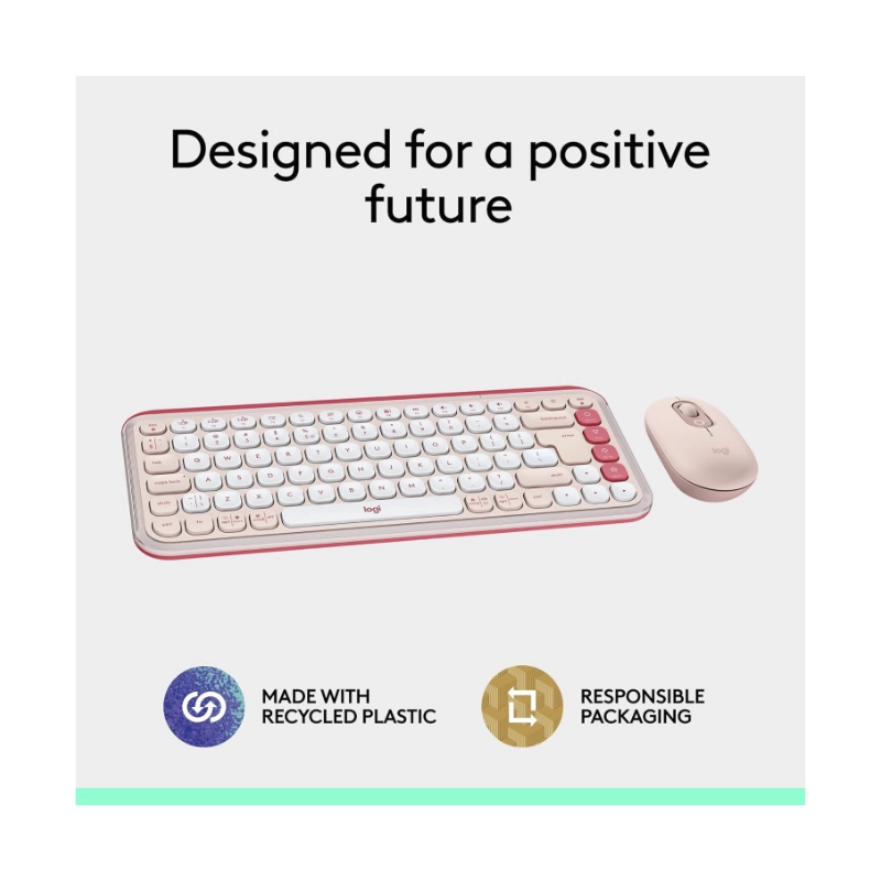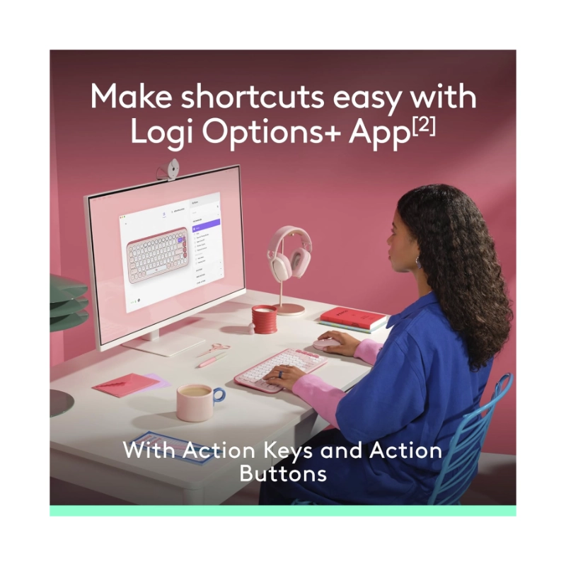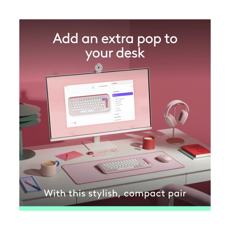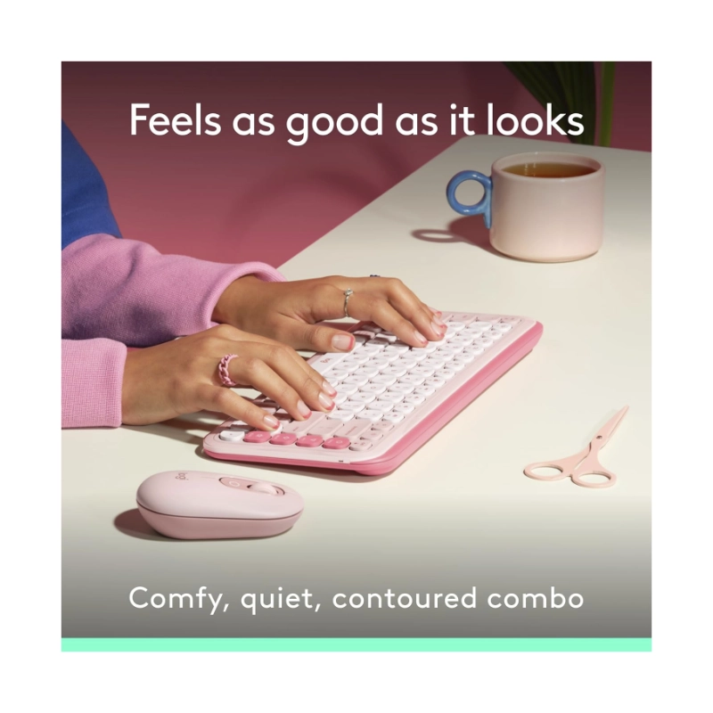 Combo Inalambrico Logitech Pop Icon Combo (920-013053) Rosa, Bluetooth, Escritura Comoda, Clics Silenciosos, Programables, Teclado+Mouse