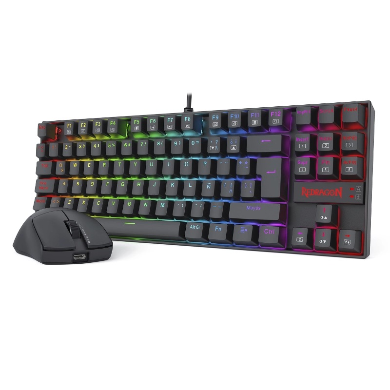 Combo Redragon Gaming Essentials (S145-Sp) Gaming, Teclado+Mouse, Kumara K552 Rgb + K1Ng M724, Mecanico, Switch Azul, Led-Rgb