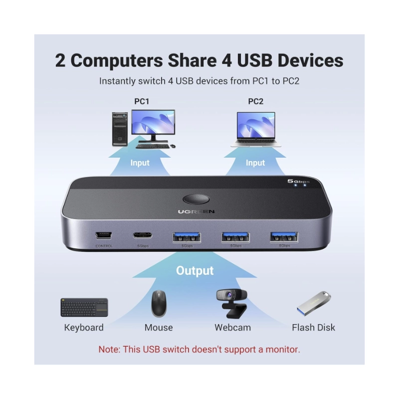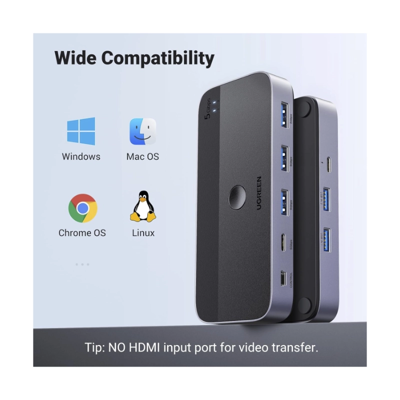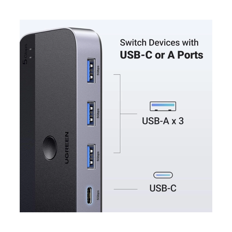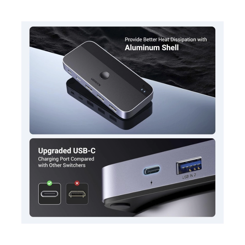 Conmutador Usb 3.0 Ugreen Cm662 (15705) 2 Computadoras Que Comparten Dispositivos Usb C Y A, Usb De 4 Puertos Para Compartir Teclado/Mouse/Camara/Etc