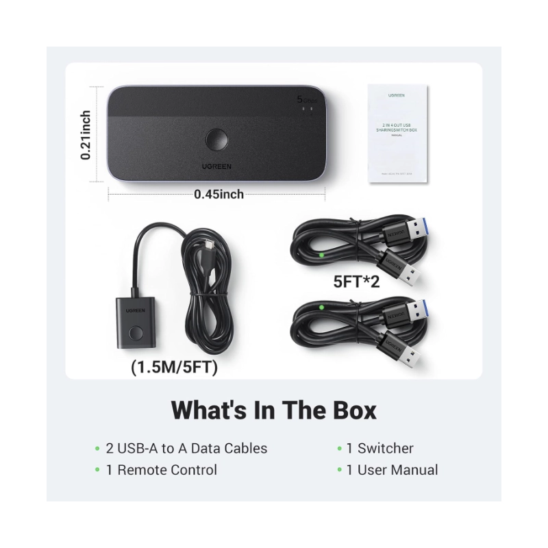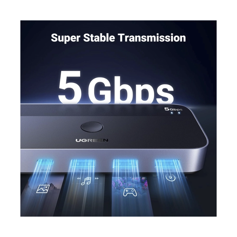 Conmutador Kvm Hdmi Ugreen Cm692 (25961) Para 2 Computadoras Que Comparten 1 Monitor, Teclado, Mouse, Discos Duros, Impresora, Con 2 Cables Hdmi Y Usb