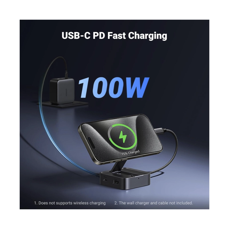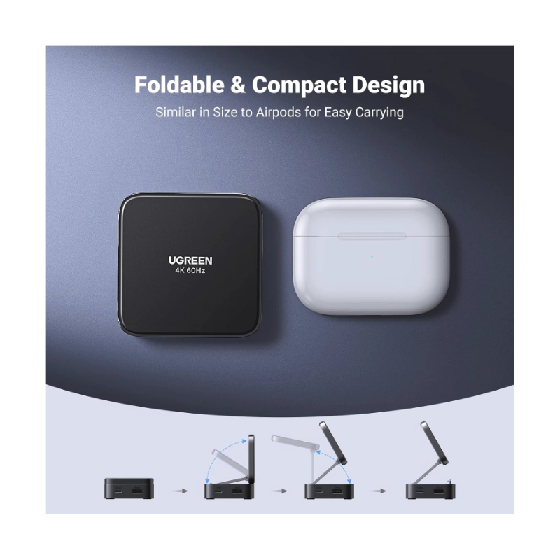 Docking Station Magnetico Ugreen Usb-C A 4 En 1 Cm801 (35590) X1 Hdmi, X1 Usb-A, X1 Usb-C, Portatil Plegable, Carga Rapida 100W