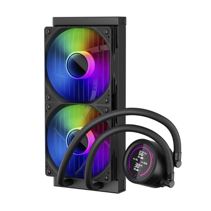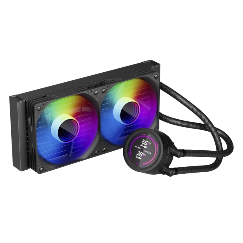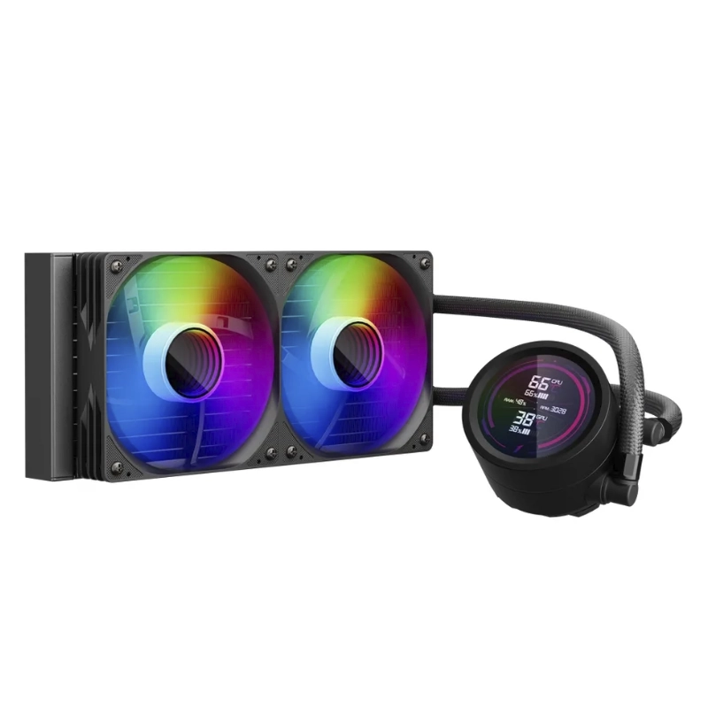 Enfriamiento Liquido Deep Cool Lm240 (R-Lm240-Bkdmmc-1) Negro, Aplicable A Socket, 1155/1851-Am4/Am5, Pantalla Ips 2,4, Reproduce Mp4, X2 Fan, Argb