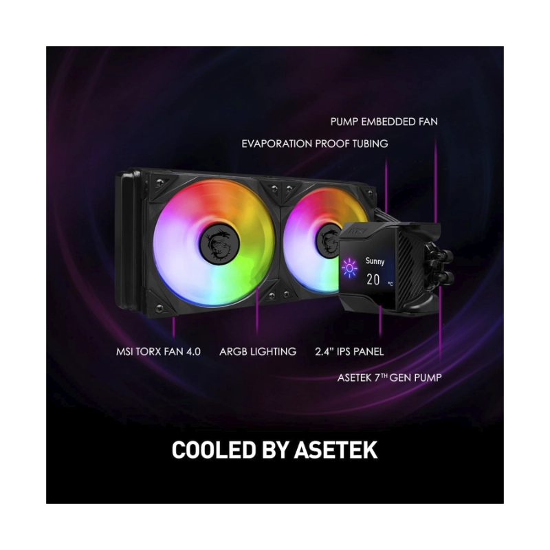 Enfriamiento Liquido Msi (Mpg Coreliquid D240) Negro, 1150/1700-Am4/Am5, X2 Fan, Pantalla Lcd Ips De 2.4, Led-Argb