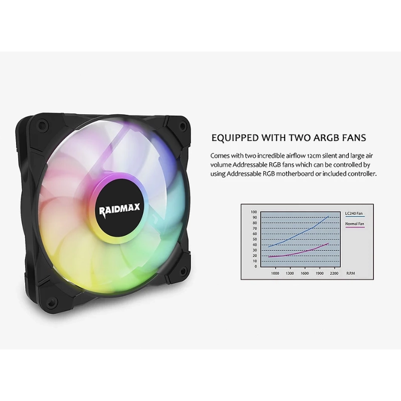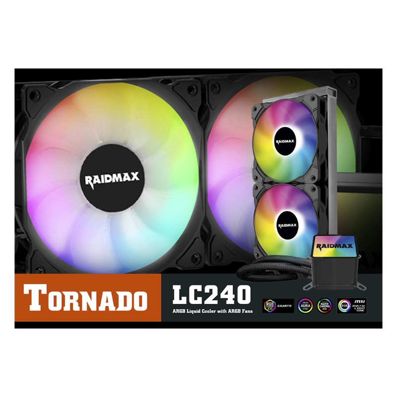 Enfriamiento Liquido Raidmax Tornado Lc240 (4711061620057) 1151/1200-am4/am5+, Negro, X2 Fan, Led-argb