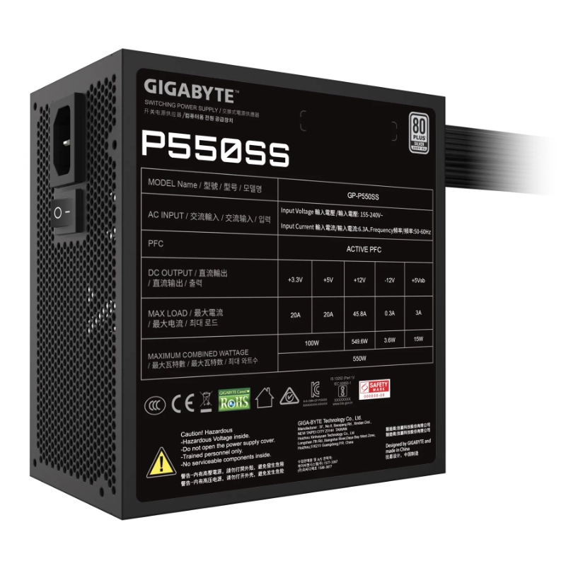 Fuente De Poder Gigabyte P550Ss (Gp-P550Ss) 550W, Negro, Silver