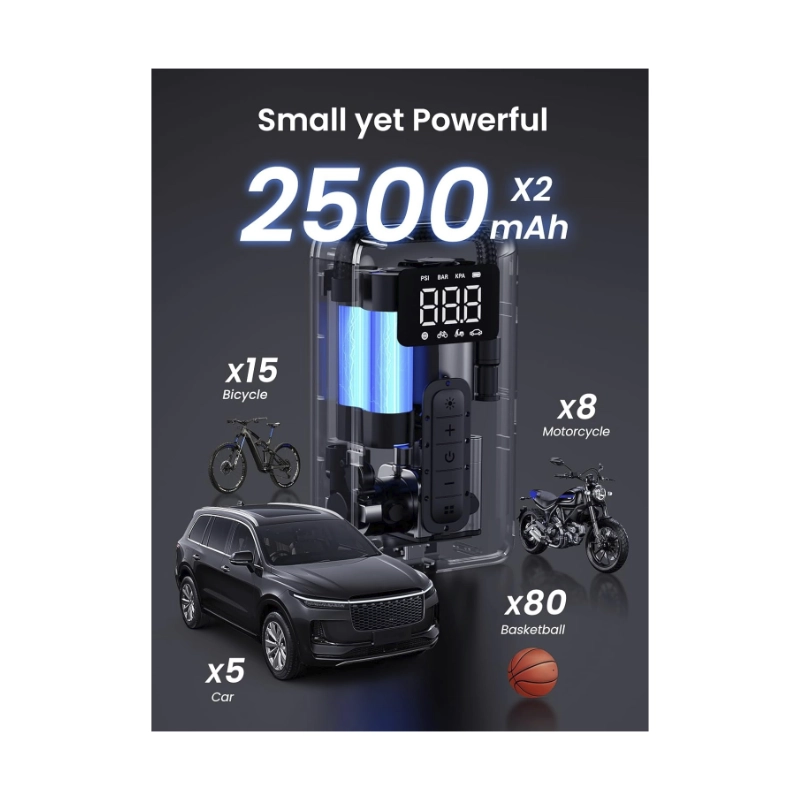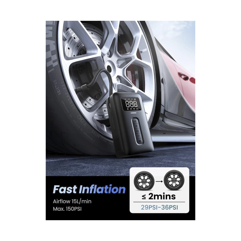 Inflador De Neumaticos Ugreen Cd259 (15951) Compresor De Aire Portatil, Bomba De Aire De 150 Psi, Para Coches, Bicicletas, Pelotas De Motocicleta