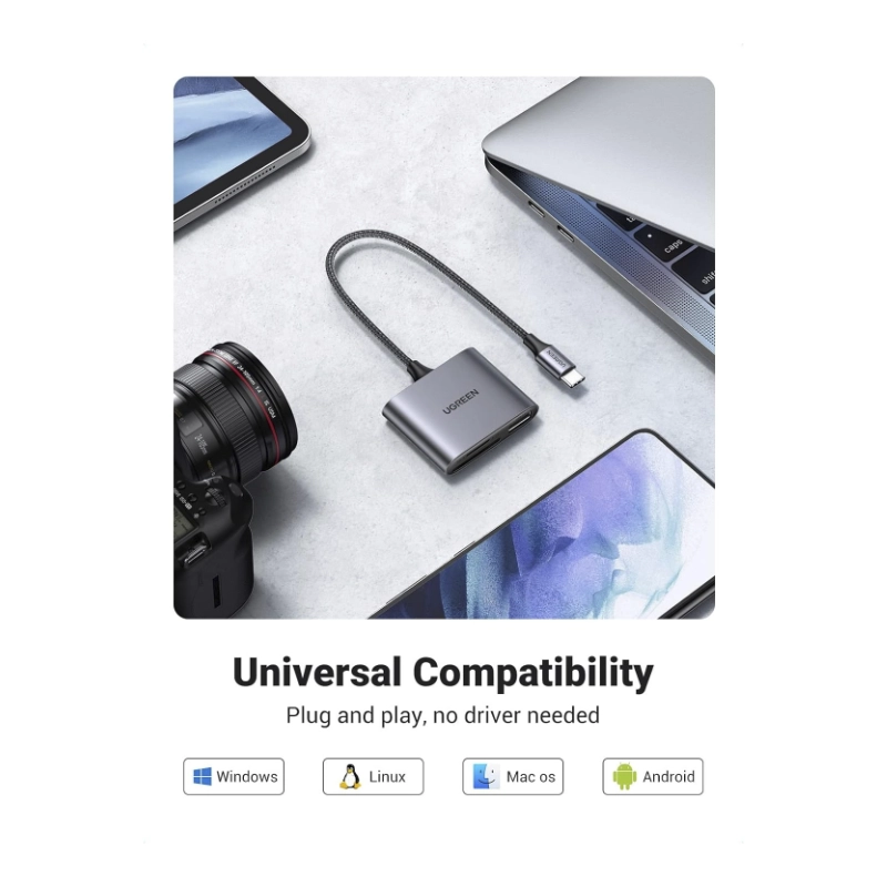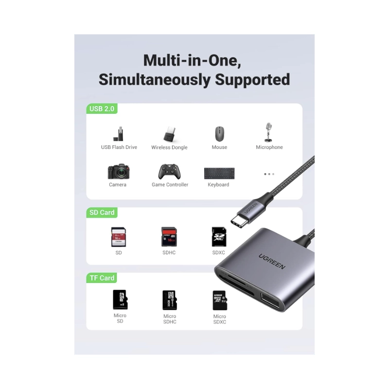 Lector De Memorias Sd Ugreen Cm387 (80798) X1 Usb, X1 Sd Slot, X1 Tf Card
