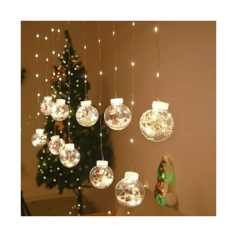 Luces Led Cortina De Luz, 3 Metros, 10 Esferas Colgante, Con Figuras Navideñas, 220v, Led-multicolor