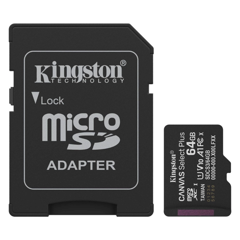 Memoria Micro Sd Kingston 64Gb Canvas Select Plus (Sdcs3/64Gb) Con Card Adaptador, Clase 10, Uhs-I, U1, V10, A1, 100Mb/S