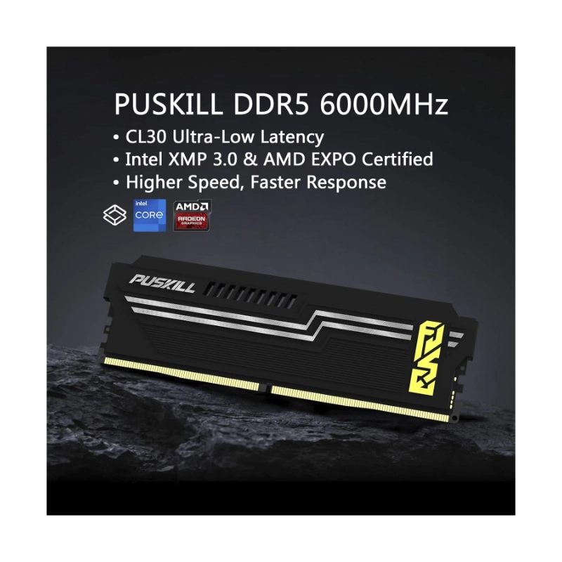 Memoria Ram Puskill Fuse Ddr5 16Gb/6000 (Psk-D5D30M6000B-16G) Negro, Cl30, 1.4V, Xmp