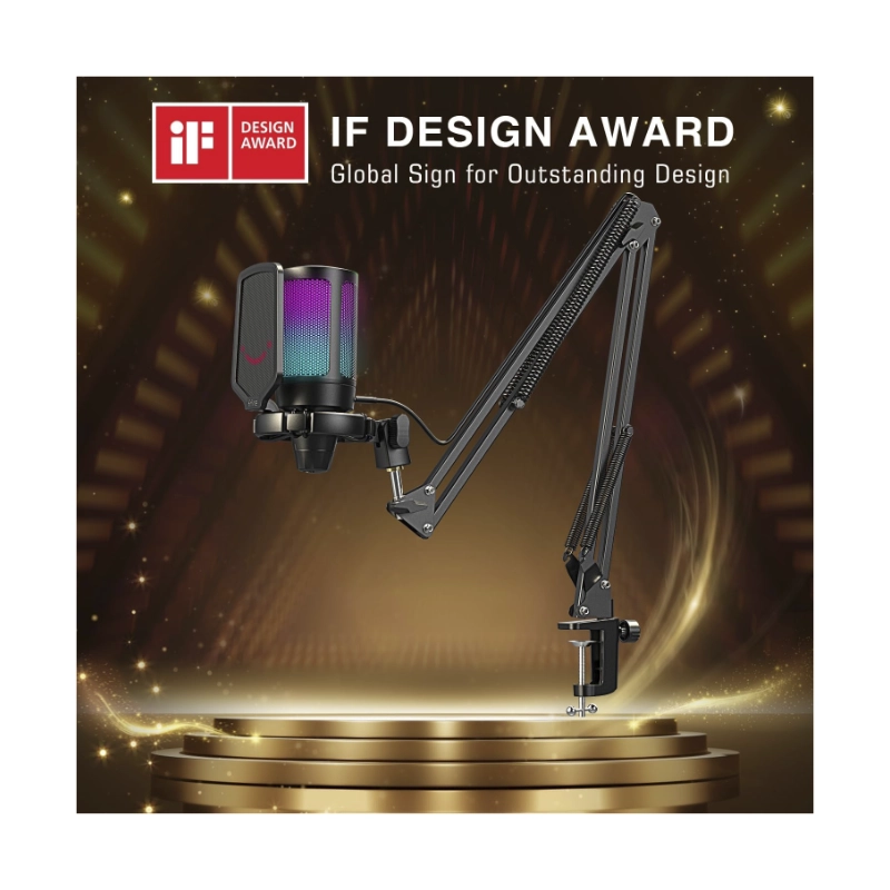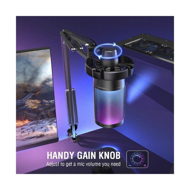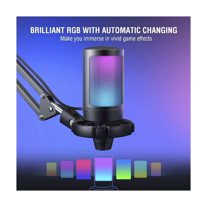 Microfono Fifine Tam6 Ampligame (Tam6-b) Con Soporte De Brazo, Negro, Cancelacion De Ruido Ambiental, Captacion Cardioide, Para Pc/ps4/ps5, Led-rgb