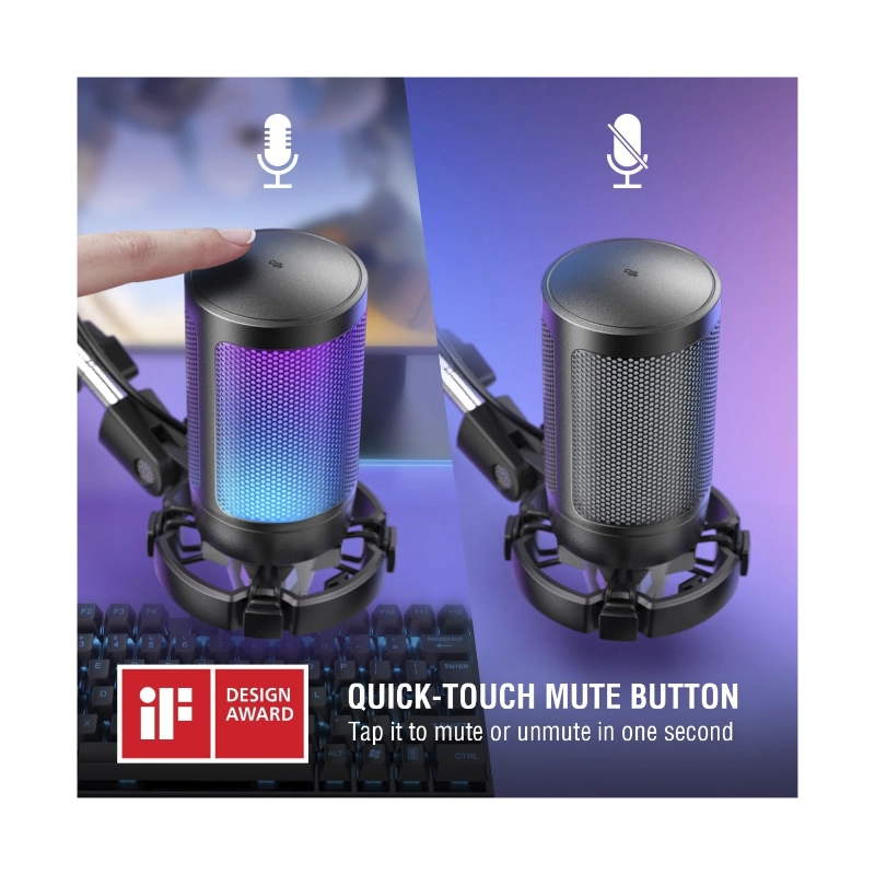 Microfono Fifine Am8 Ampligame (Am8-b) Negro, Boton De Silencio, Soporte De Escritorio, Cable Usb-c/xlr, Led-rgb