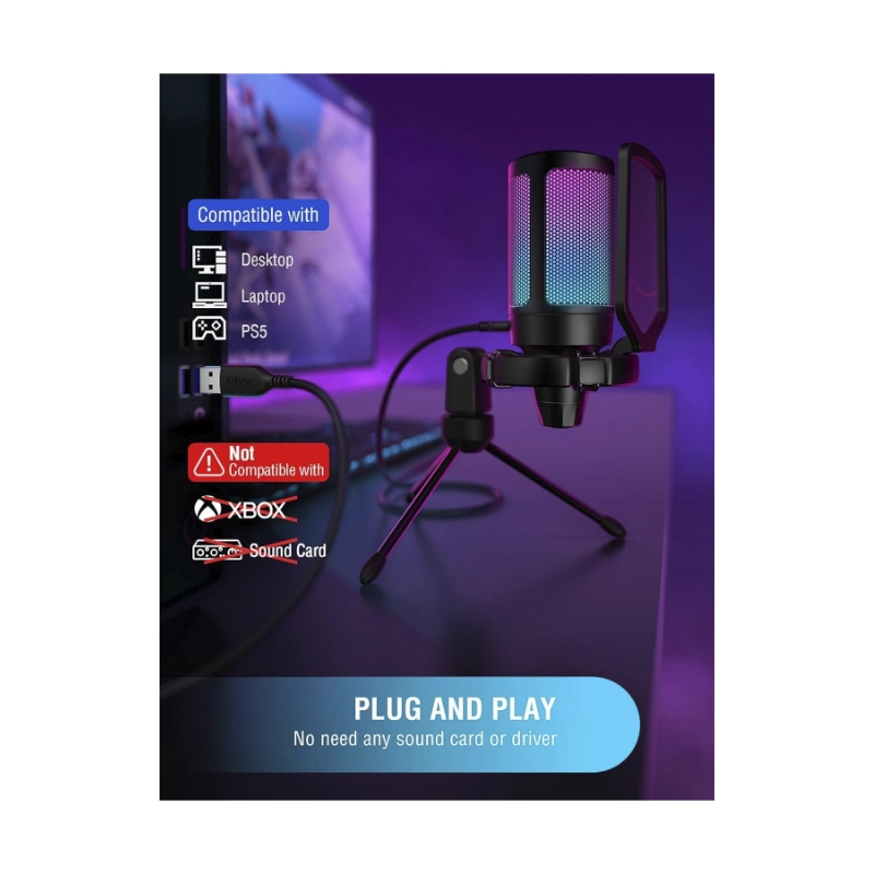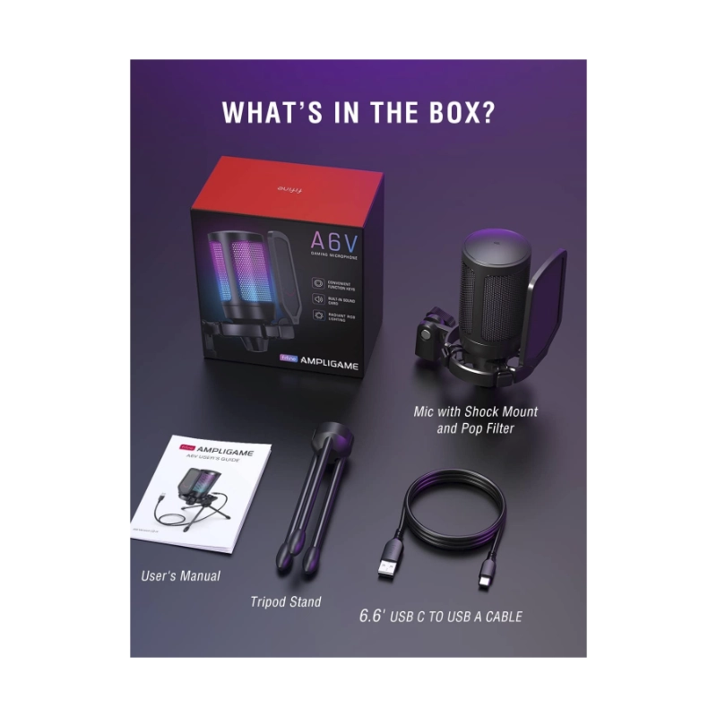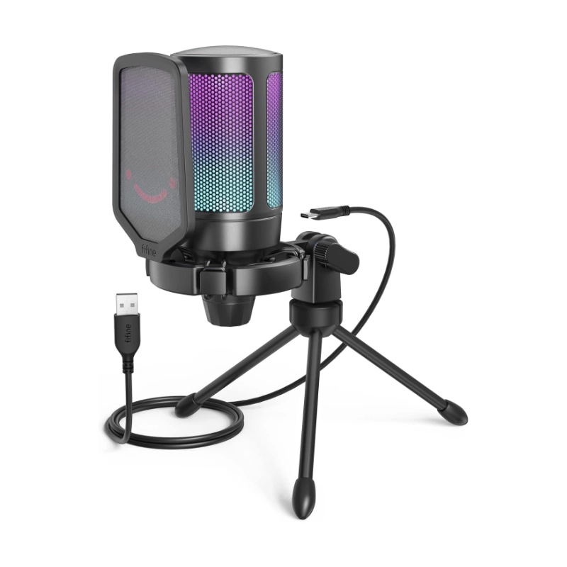 Microfono Fifine A6v Ampligame (A6v-b) Negro, Filtro Pop, Montaje De Impacto, Condensador Con Silencio Rapido, Para Pc/ps5, Led-rgb