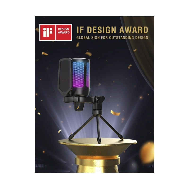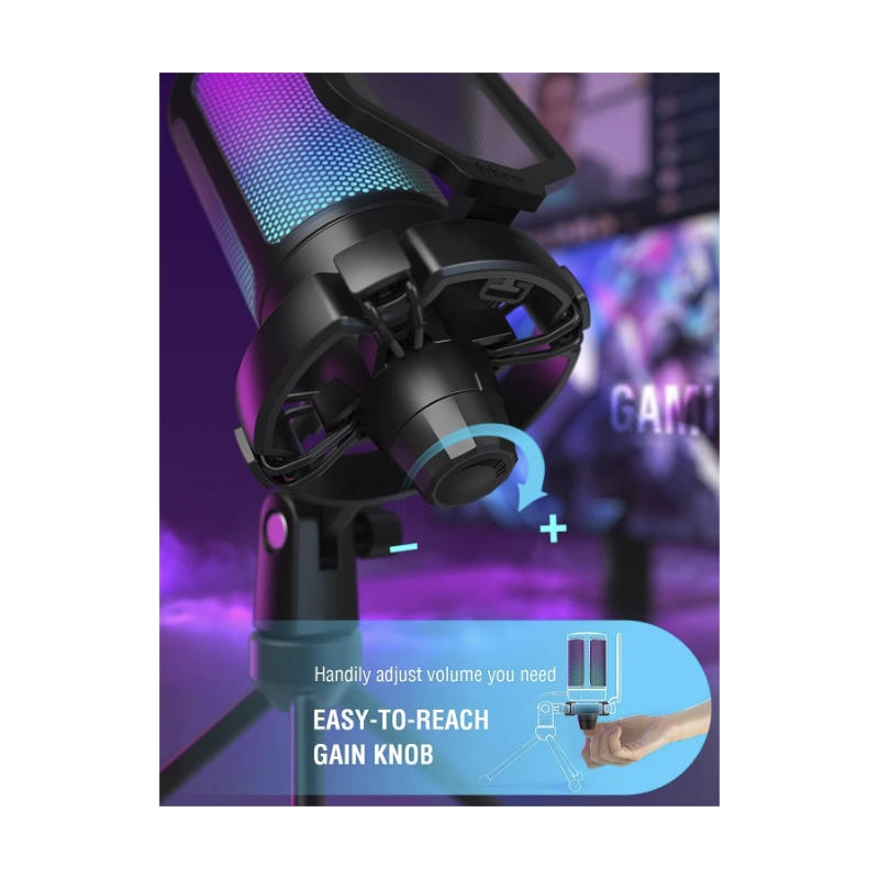 Microfono Fifine A8 Ampligame (A8-p) Rosado, Con Control Rgb, Toque De Silencio, Filtro Antipop