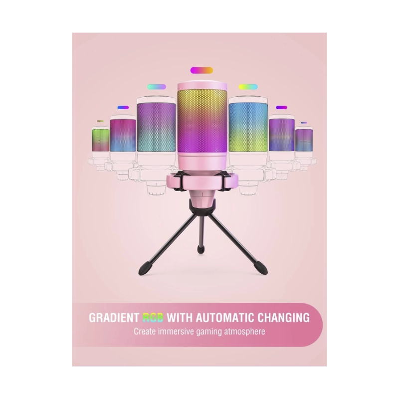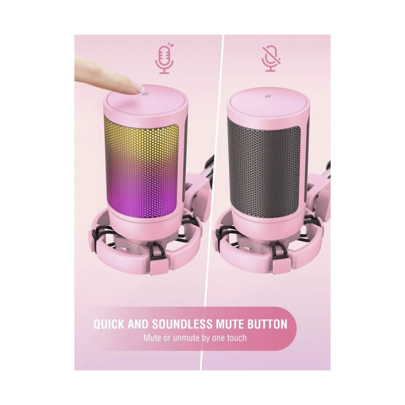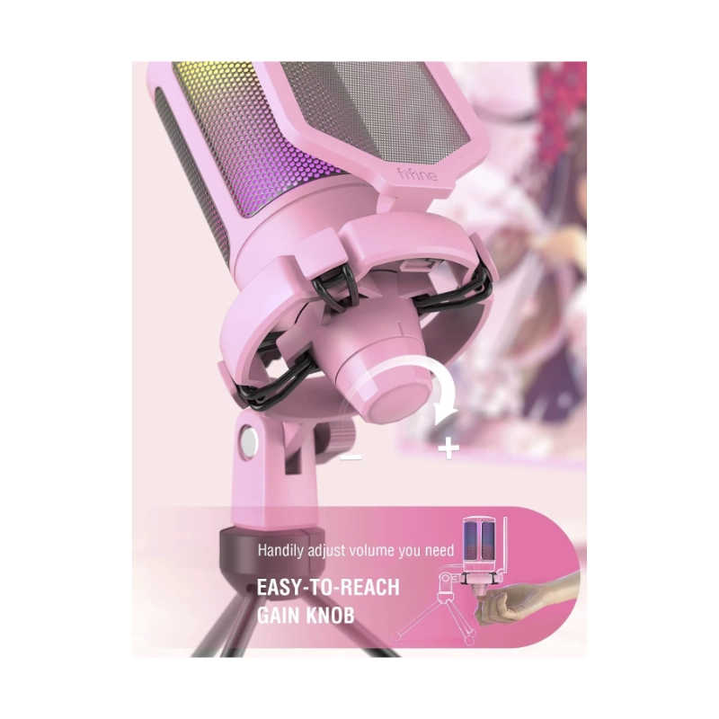 Microfono Fifine Am8 Ampligame (Am8-p) Rosado, Boton De Silencio, Soporte De Escritorio, Cable Usb-c/xlr, Led-rgb