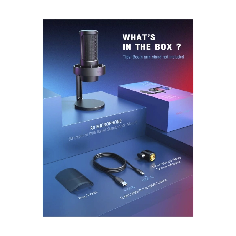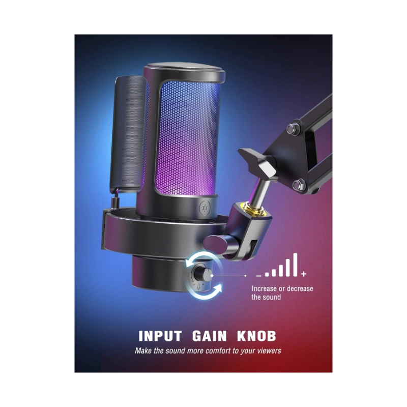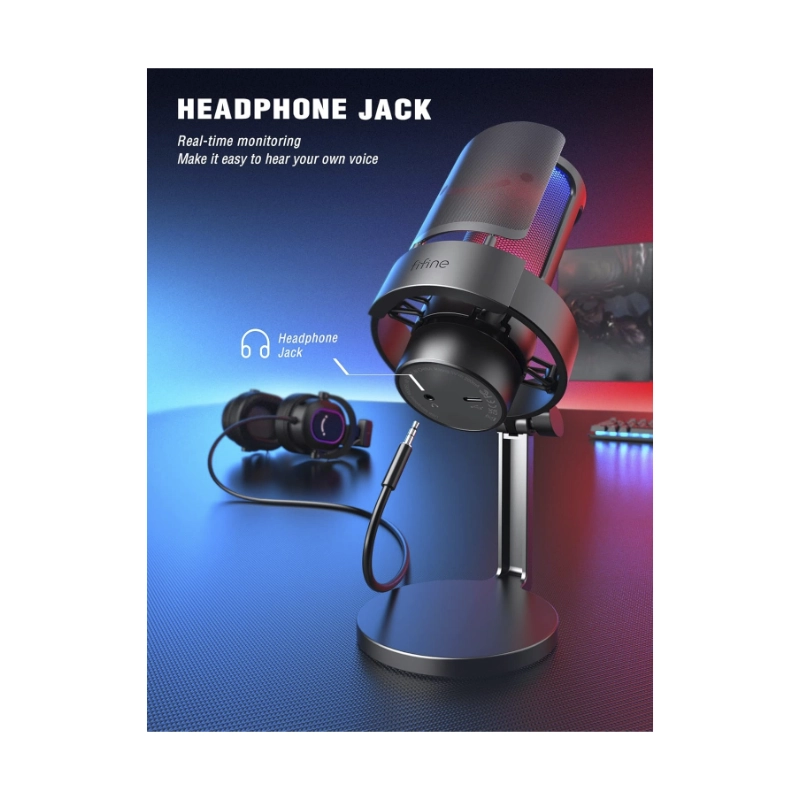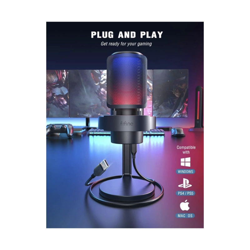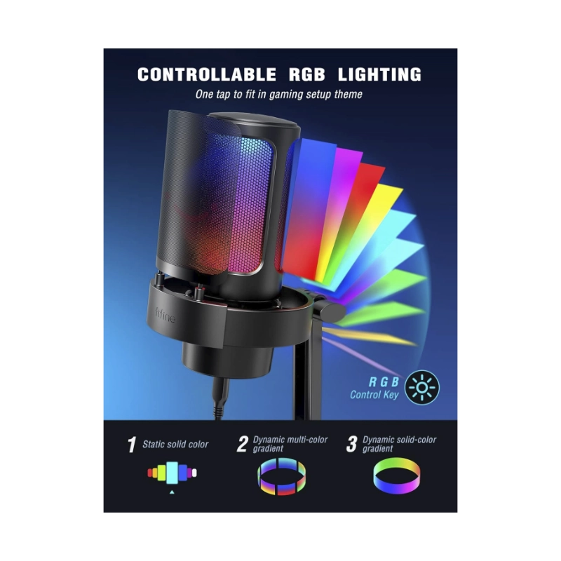 Microfono Fifine A8 Ampligame (A8-b) Negro, Con Control Rgb, Toque De Silencio, Filtro Antipop