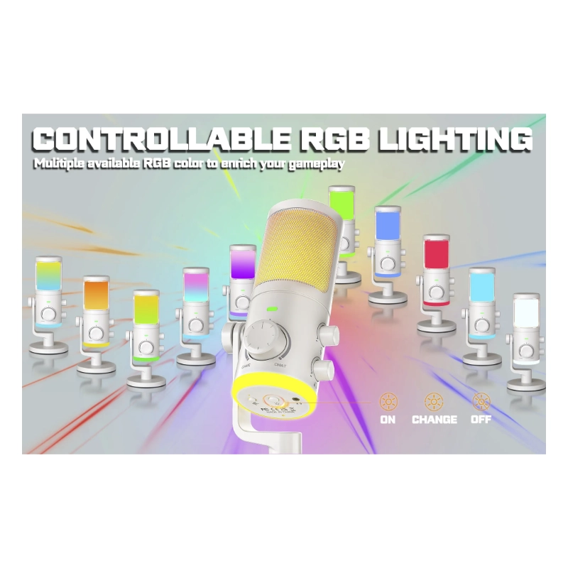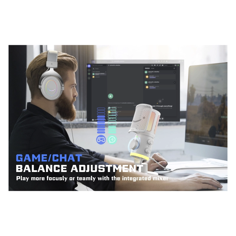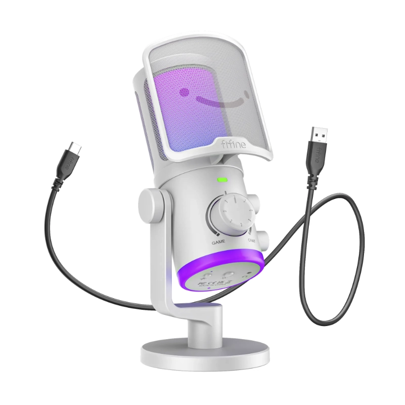 Microfono Fifine Am6 Ampligame (Am6-w) Blanco, Equilibrio De Chat De Juego, Boton De Silencio, Pc/ps4/ps5, Led-rgb
