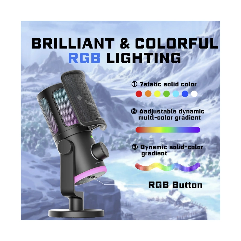 Microfono Ugreen (35629) Negro, Boton De Silencio, Patron Polar Cardioide, Juegos, Podcasting, Led-Rgb