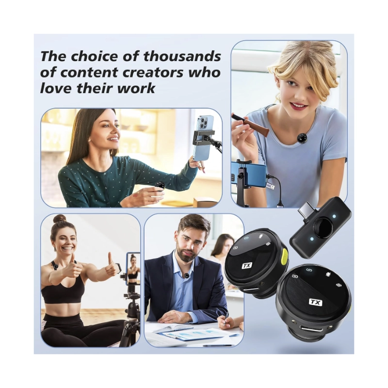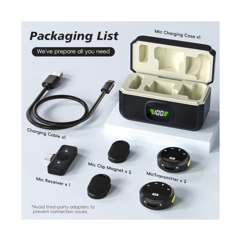 Microfono Inalambrico Portatil (Q8) Adaptador Usb-C/Lightning, X2 Microfonos + Estuche De Carga, Calidad De Sonido Clara, Reduccion De Ruido
