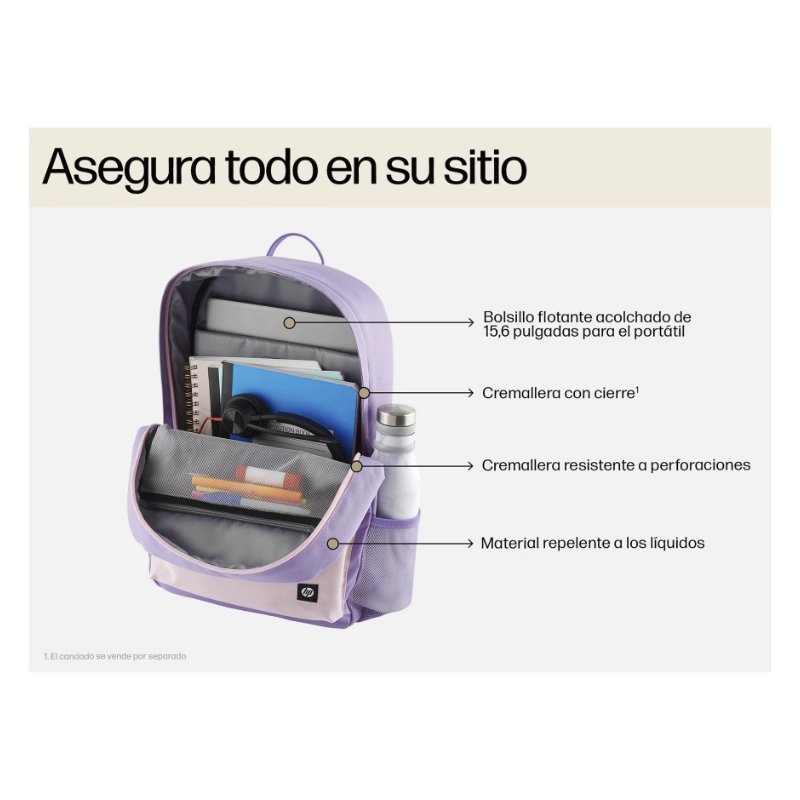 Mochila Para Laptop Hp Campus Lavender (7J597Aa) Rosa Lavanda, Hasta 15.6
