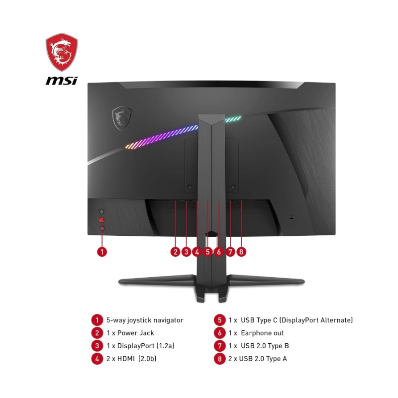 Monitor Gaming Msi 32 (Mag 32C6X) Curvo, Fhd, Va, Hdmi/Dp, 1Ms, 250Hz