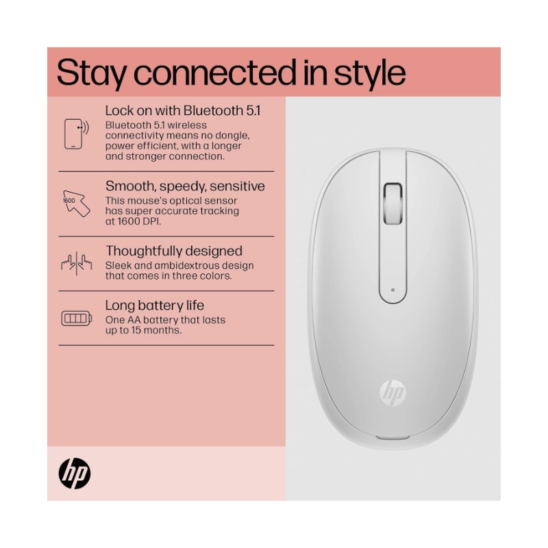 Mouse Inalambrico Hp Souris 240 (793f9aa#aba) Blanco, Bluetooth, 1600 Dpi