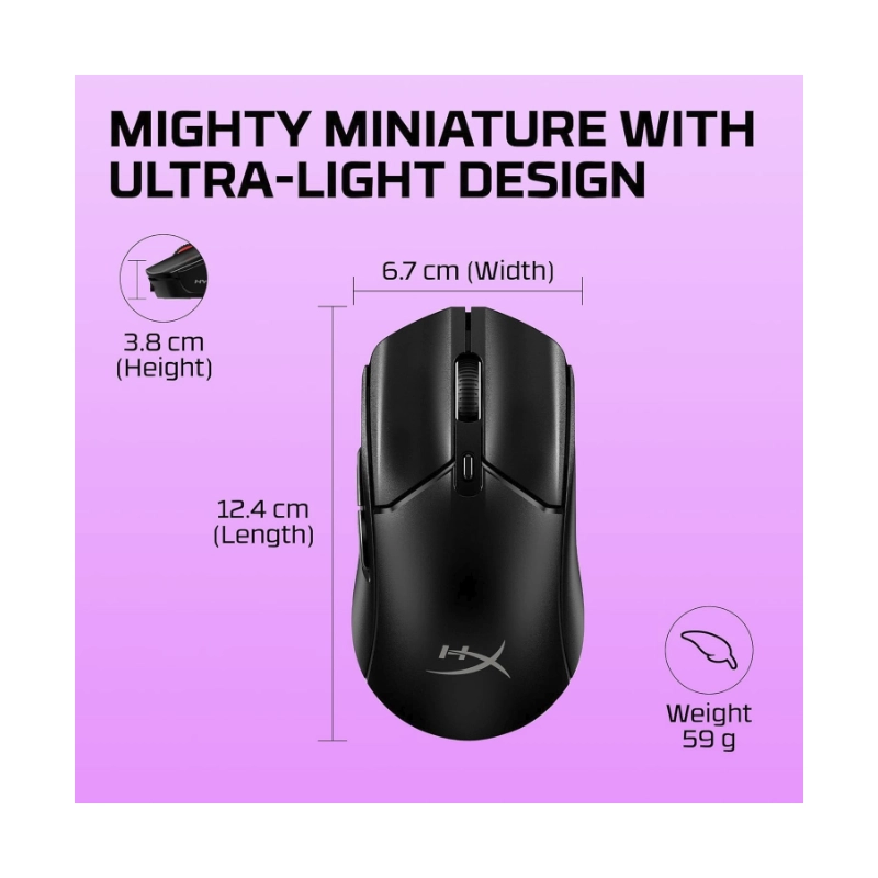 Mouse Inalambrico Hyperx Pulsefire Haste 2 Mini (7D388Aa) Gaming, Bluetooth, Negro, 26000 Dpi, 59G, Compacto Y Ligero, Hasta 100 Horas
