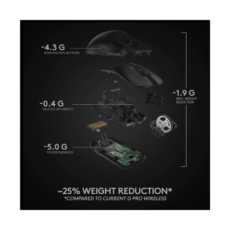 Mouse Inalambrico Logitech G Pro X Superlight (910-005878) Gaming, Negro, 25600 Dpi, 63g