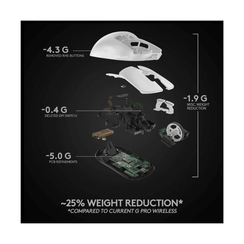Mouse Inalambrico Logitech G Pro X Superlight (910-005940) Gaming, Blanco, 25600 Dpi, 63g