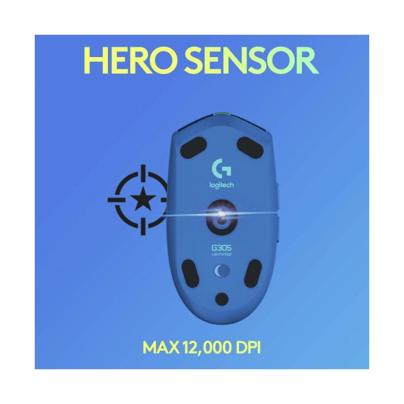 En el corazón del Logitech G305 se encuentra el aclamado sensor HERO de Logitech, un sensor óptico de grado gaming que redefine los estándares de precisión. Con una resolución ajustable de 200 a 12,000 DPI, el sensor HERO rastrea cada movimiento con una precisión milimétrica y sin aceleración, suavizado ni filtrado. Además de su precisión, el sensor HERO es increíblemente eficiente en el consumo de energía. Esta eficiencia te permite jugar durante horas sin preocuparte por la batería, una característica clave del mouse G305.