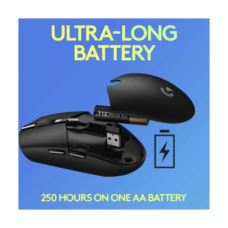 Gracias al sensor HERO, la batería del Logitech G305 es extraordinariamente duradera. Con una sola pila AA, puedes disfrutar de hasta 250 horas de juego continuo. Esto significa que puedes jugar durante meses sin necesidad de cambiar la pila. Y si quieres extender la duración aún más, el mouse cuenta con un modo de ahorro de energía que se activa automáticamente. La fiabilidad y la larga duración de la batería hacen del mouse G305 LIGHTSPEED una de las mejores opciones en el mercado.