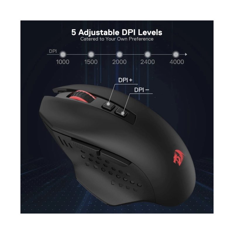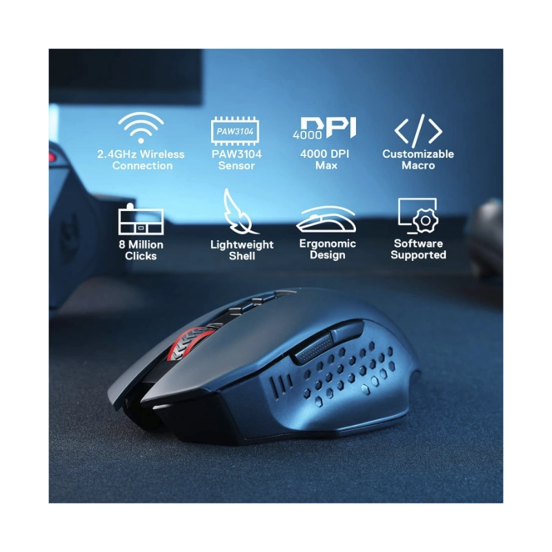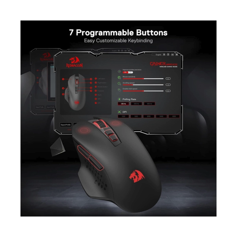 Mouse Inalambrico Redragon Gainer Wireless (M656) Gaming, Negro, 4000 Dpi