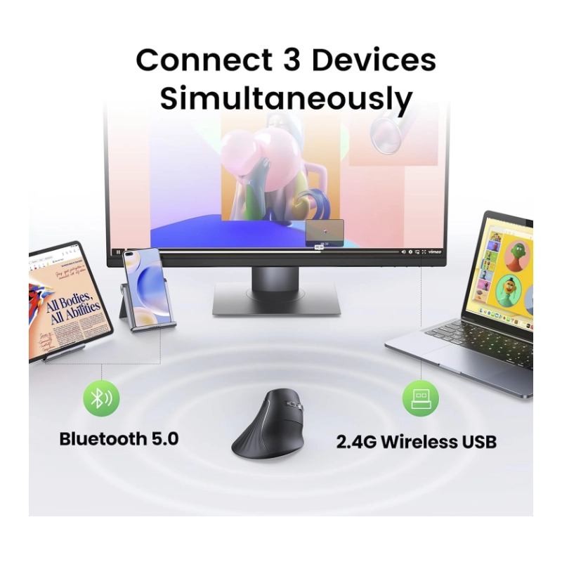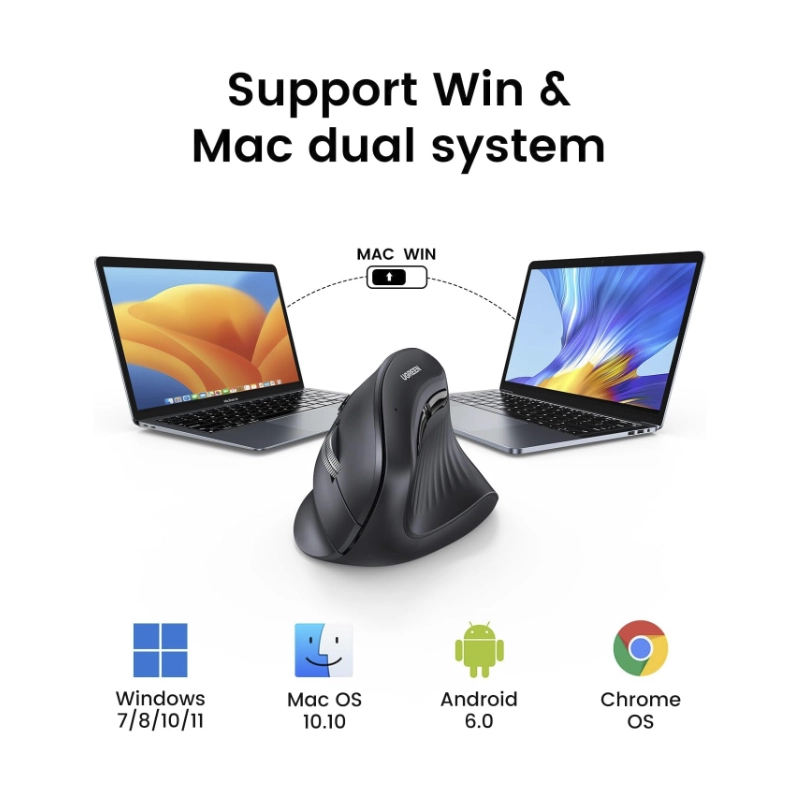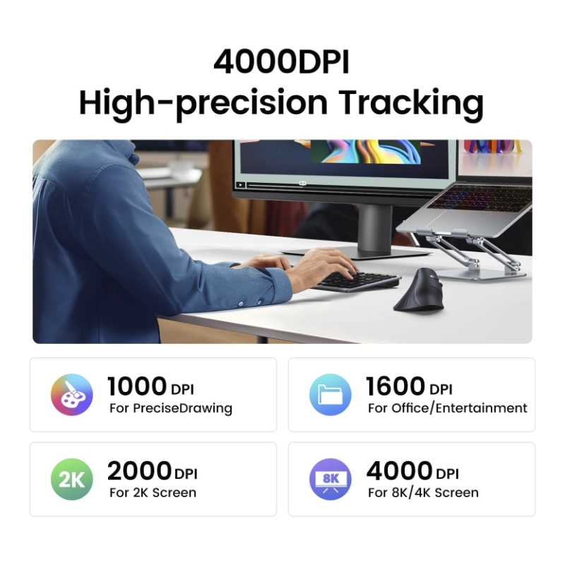 Mouse Inalambrico Ugreen Mu008 (25444) Negro, Bluetooth, Ergonomico, 5 Botones, 4000 Dpi