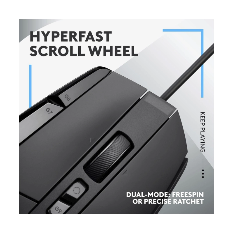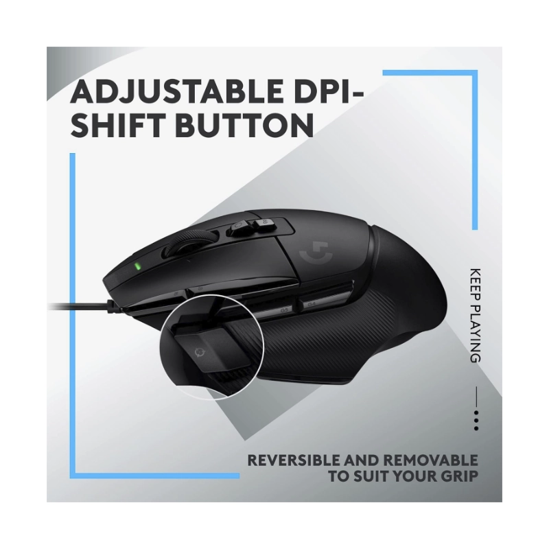 La personalización es clave para un rendimiento óptimo. El G502 X cuenta con 13 botones programables que puedes configurar a través del software G HUB. El botón de cambio de DPI, conocido como «DPI-shift», ha sido rediseñado para ser reversible y extraíble, permitiéndote ajustarlo para un agarre y una comodidad perfectos. La rueda de desplazamiento ha sido rediseñada para ofrecer una experiencia aún mejor, con dos modos: uno hiper-rápido para navegar por documentos y otro con clics precisos para el juego.