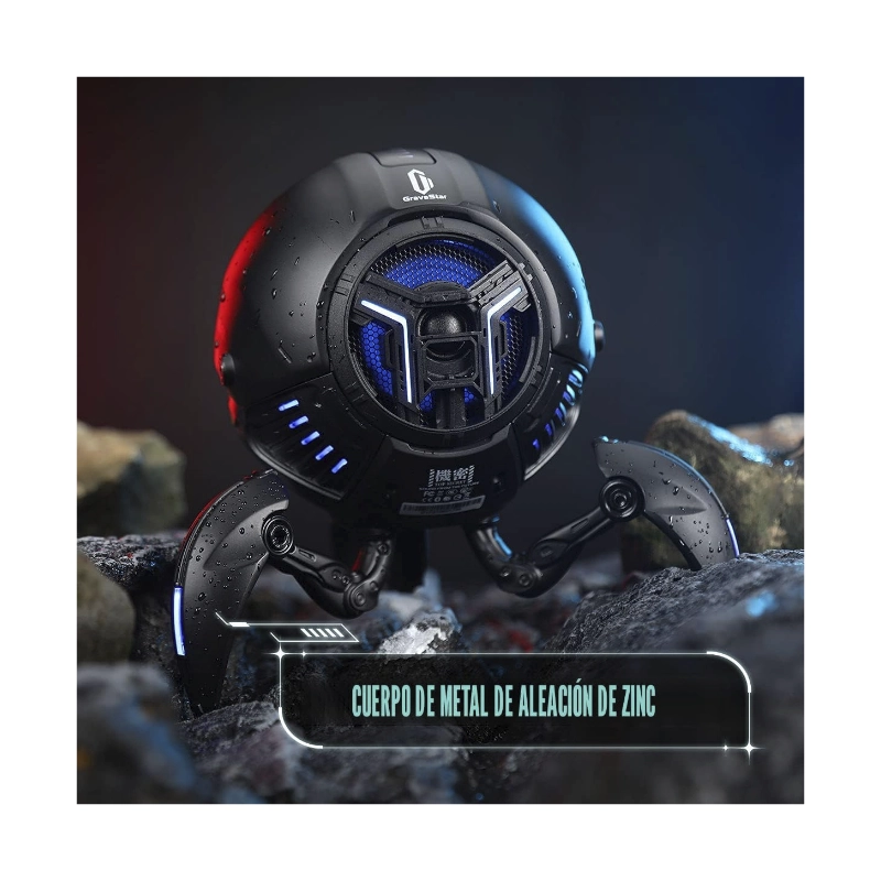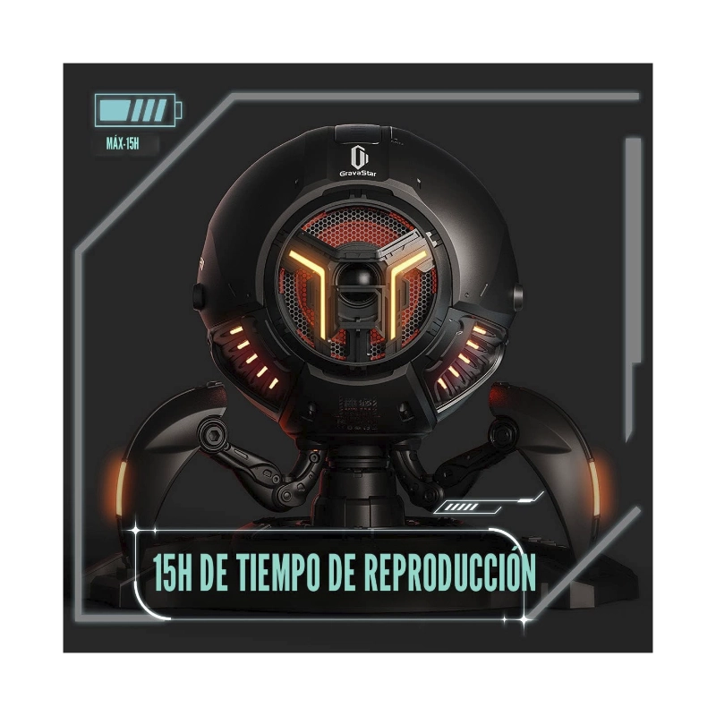 Parlante Portatil Gravastar Mars Pro (G1 Pro_blk_v2) Robotico, 20W, Negro Mate, Sonido Estereo, Graves Profundos, Bluetooth, 15H De Reproduccion, Rgb
