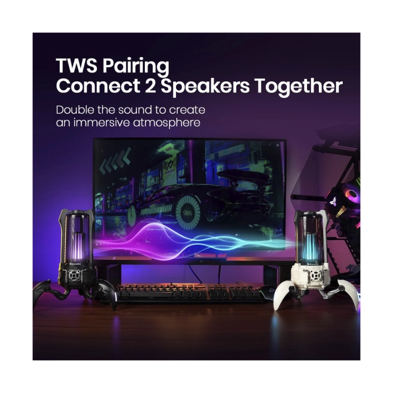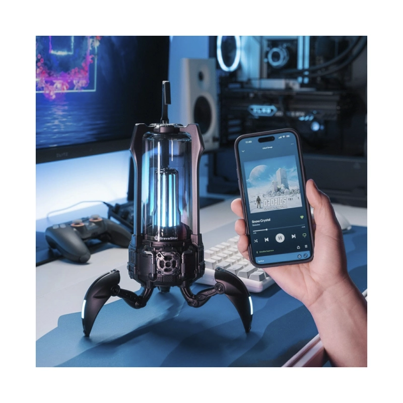 Parlante Portatil Gravastar Supernova (G5_blk) Robotico, 25W, Negro, Emparejamiento Tws, Lampara De Mesa Led, Bluetooth, 9H De Reproduccion