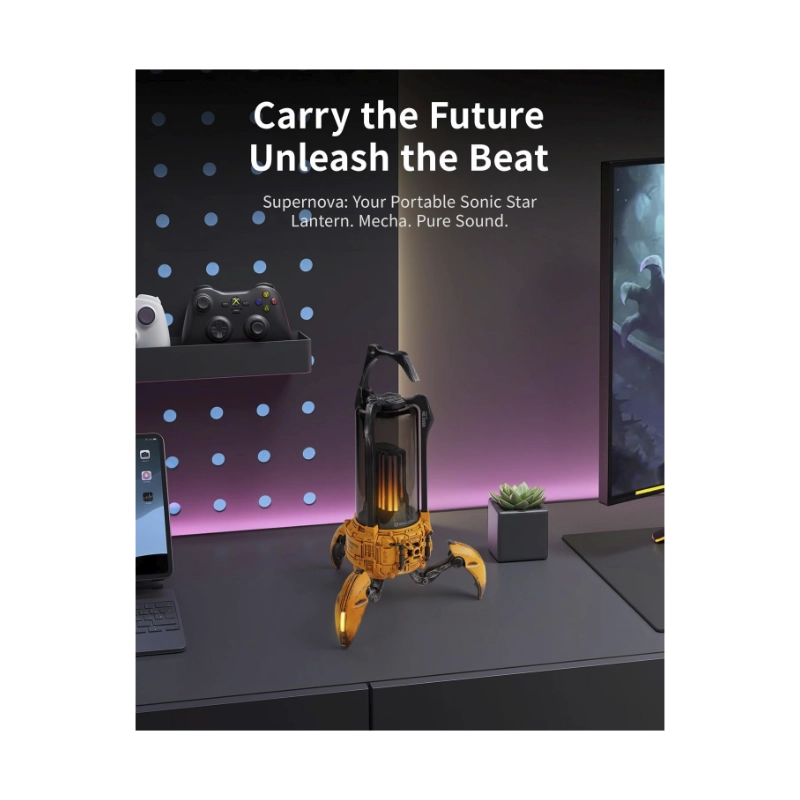 Parlante Portatil Gravastar Supernova (G5_ylw) Robotico, 25W, Amarillo, Emparejamiento Tws, Lampara De Mesa Led, Bluetooth, 9H De Reproduccion