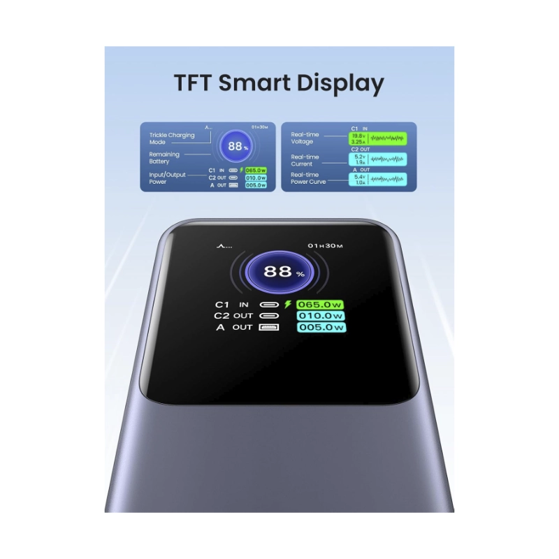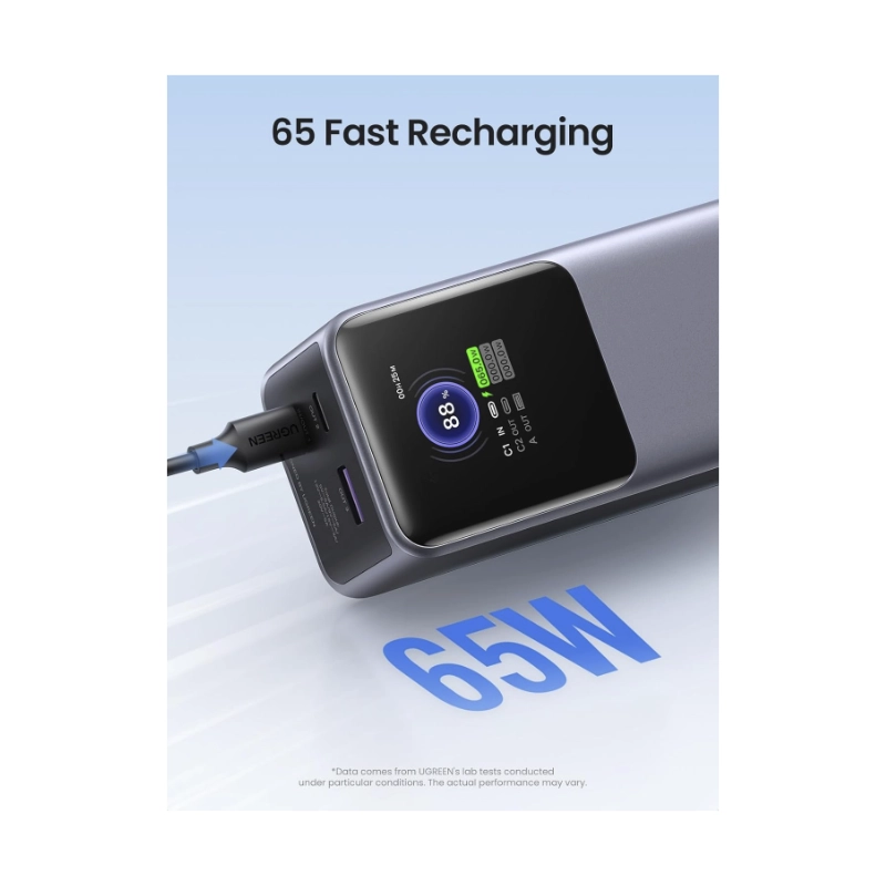 Power Bank Ugreen Pb721 (35524B) Nexode, Portatil 72Wh Pd, Pantalla Inteligente Tft, Carga Rapida De 130 W, 20000Mah