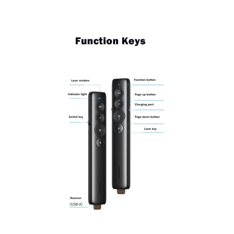 Presentador Laser Inalambrico Ugreen Laser Pointer (50654) Hasta 200m Distancia, Negro