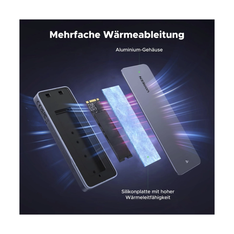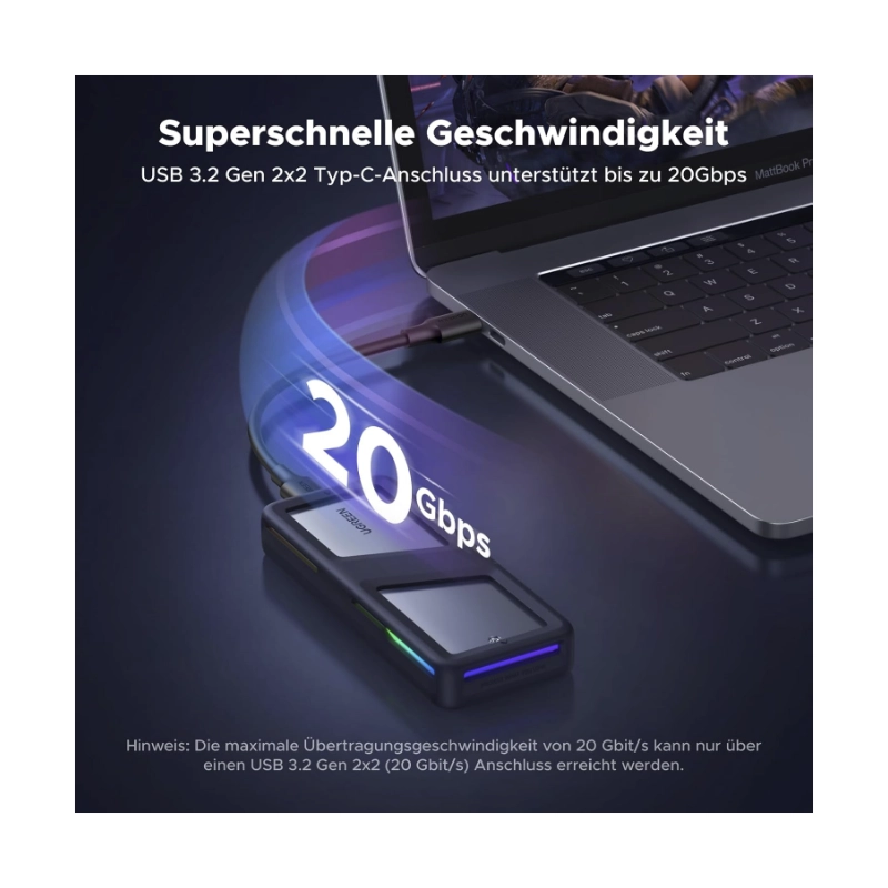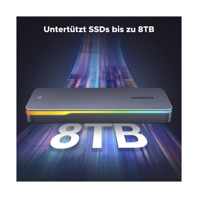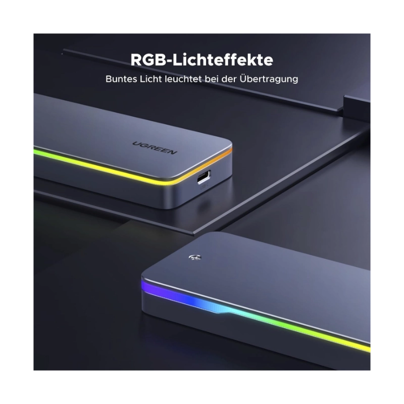 Rack Para M.2 Ugreen Cm777 (25665) Negro, Hasta 20Gbps, M.2 Nvme/Sata, 2230/2242 /2260/2280, Cable Usb-C, Led-Rgb