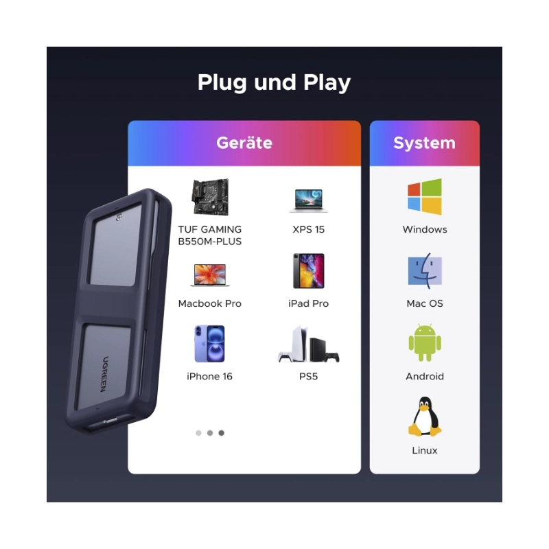 Rack Para M.2 Ugreen Cm767 (15813) Negro, M.2 Nvme/Sata, 2230/2242 /2260/2280 Nvme Sata Ssd, Cable Usb-C/Usb 3.2