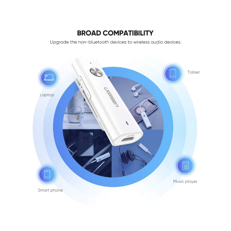 Transmisor Receptor Bluetooth Ugreen (35223) Bt 5.2, Adaptador Aux Jack 3.5Mm Y Rca, Audio Inalambrico Con Microfono, Pc Altavoz Amplificador