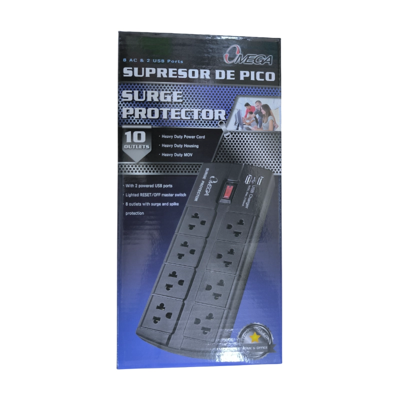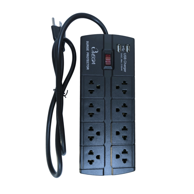 Regleta Omega 8 Tomas (498844Bk) Negro, X2 Usb