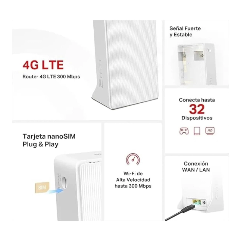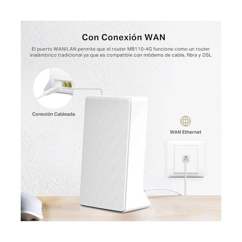 Router Inalambrico Mercusys 4G Lte (Mb110-4G) X1 Ranura Sim, 2.4Ghz/300Mbps, Port X1 Wan + X1 Lan 10/100Mbps, Conecta Hasta 32 Dispositivos