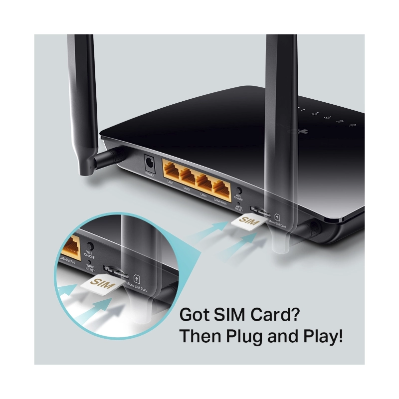 Router Inalambrico Tp-Link 4G Lte (Tl-Mr6400) Hasta 300Mbps, Antena X2, Port X1 Wan + X3 Lan 10/100Mbps, 1 Ranura Para Tarjeta Sim