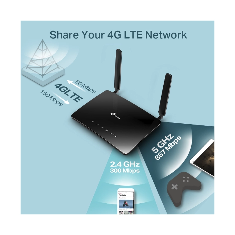 Router Inalambrico Tp-Link 4G Lte Ac1200 Dual (Archer Mr400) 2.4Ghz/300Mbps, 5Ghz/867Mbps, Antena X2, Port X1 Wan + X3 Lan 10/100Mbps, 1 Ranura Sim