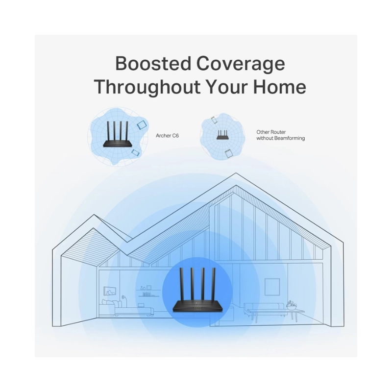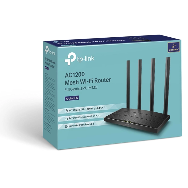 Router Inalambrico Tp-link Ac1200 (Archer C6) 2.4ghz/400mbps, 5ghz/867mbps, Antena X4, Port X4 10/100/1000mbps